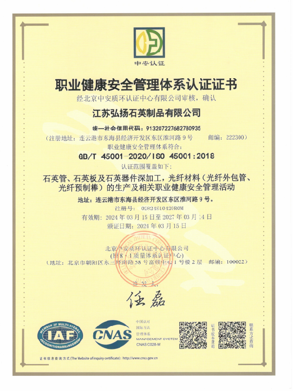 職業健康安全管理體系認證證書